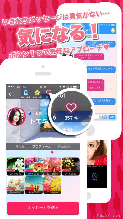 のアプリは、相手との最初のコンタクトが簡単で気軽にできることが嬉しいポイントです。メッセージを送る前のワンクッションがあるので、相手と繋がるのが気楽です。