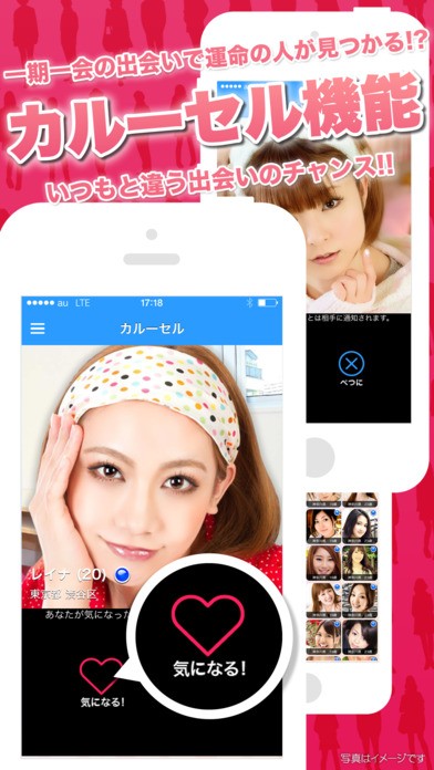 「カルーセル」を使えば雑誌のページをめくる感覚でスワイプして、直感で相手を選ぶことができますよ。ただ、前のページには戻れません!一期一会を楽しんでくださいね。