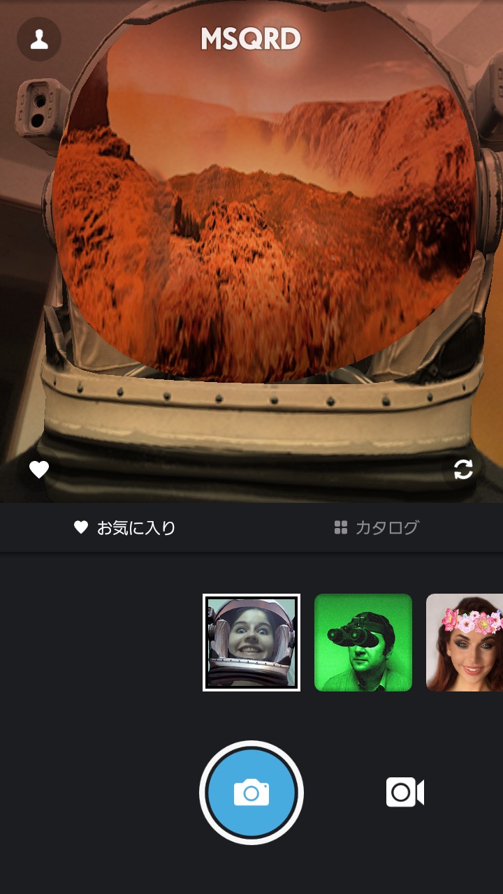 「MSQRD」は、アプリで写した人の顔をさまざまなものに変身させる無料アプリです。「MSQRD」では、アプリで写した顔に宇宙服、暗視スコープなどを付けることができたり、顔をリアルなパンダに変えてしまうことなどができます。また、「MSQRD」では、それぞれの変身で決められた動きをすると、宇宙服のマスクが閉じたり、暗視スコープが自動で装着されるなどの動きを楽しむことができます。そのため、変身の種類ごとにどんな動きをするとどんな風にアプリが反応するかチェックしておくと、アプリに顔を写している人に動きを教えてびっくりしてもらうこともできます。またこの動きを動画として録画することもできるので、飲み会の後にLINEなどで共有してさらに盛り上げてみましょう。