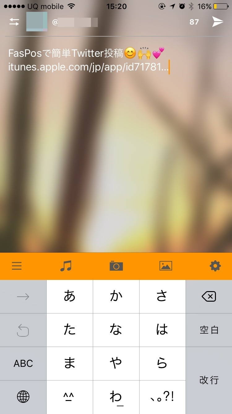 - 「FasPos」右にフリックするだけで投稿可能のスピード投稿!