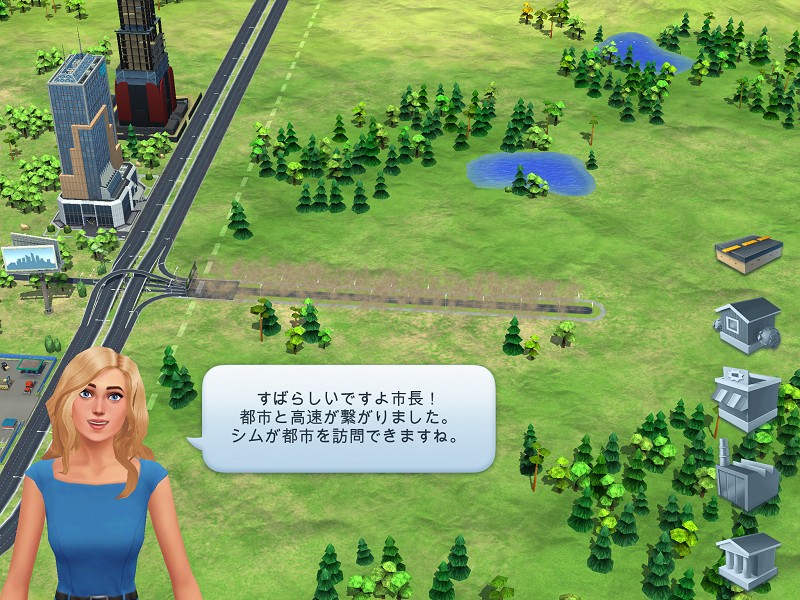 自分だけの街を、自分のスマホの中に作り上げよう!家や工場、遊園地と言った施設だけでなく、ちゃんと道路もつないであげないとダメだぞ!近くの都市と道路を接続すれば交流も発生するかも!?