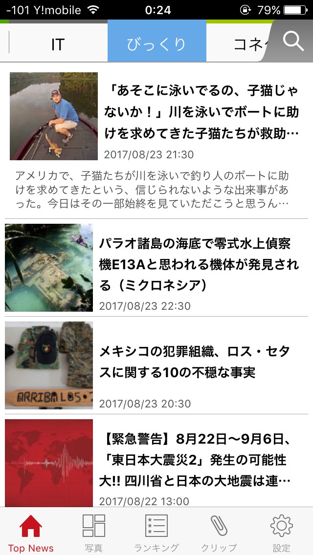 「話題のニュース速報や新聞・雑誌も無料で読み放題/エキサイトニュース」はカテゴリーごとにニュースを確認できるのが魅力です。テレビのニュース番組では、好きな時間に好きなカテゴリーだけ確認するというのはなかなか難しいですが、こちらは好きなカテゴリーをスワイプして確認できます。おなじみのエンタメやスポーツだけでなく、コラムやびっくり、コネタなどの面白いカテゴリーも充実しているのが「話題のニュース速報や新聞・雑誌も無料で読み放題/エキサイトニュース」の特徴です。