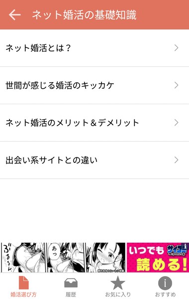 「婚活サービスの選び方」アプリは、ネット婚活についての様々な情報がキュッとコンパクトに濃縮されています。