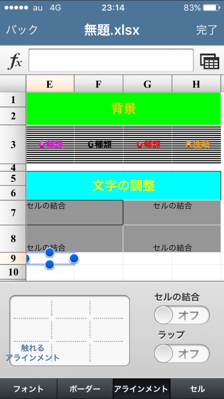 セルの色の変更以外にも6種類の背景にも変更可能です。