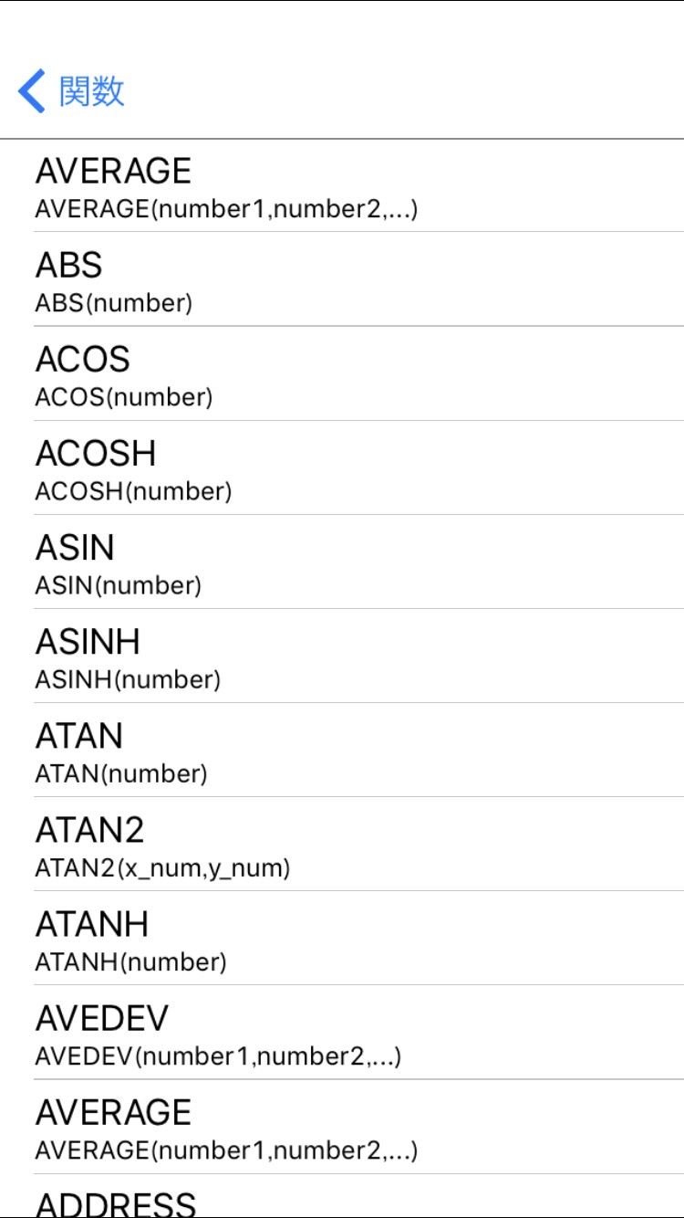 関数については、普段PCで使っている関数の種類とほぼ同じです。