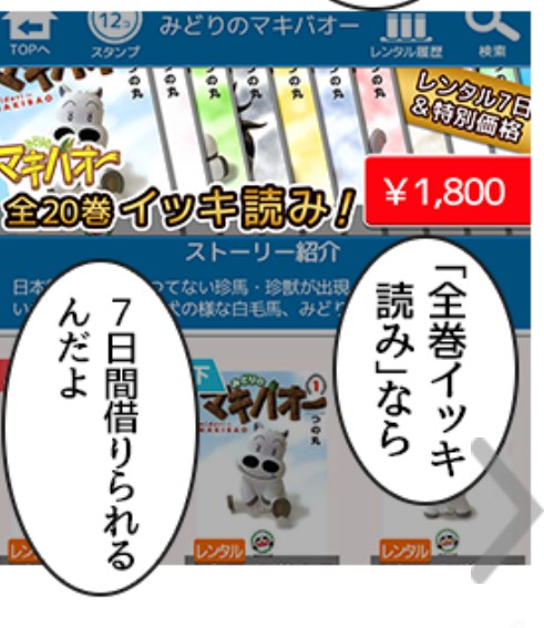 まとめレンタル(巻数に応じて値段は変わりますが)なら2日プラス1日(72時間)