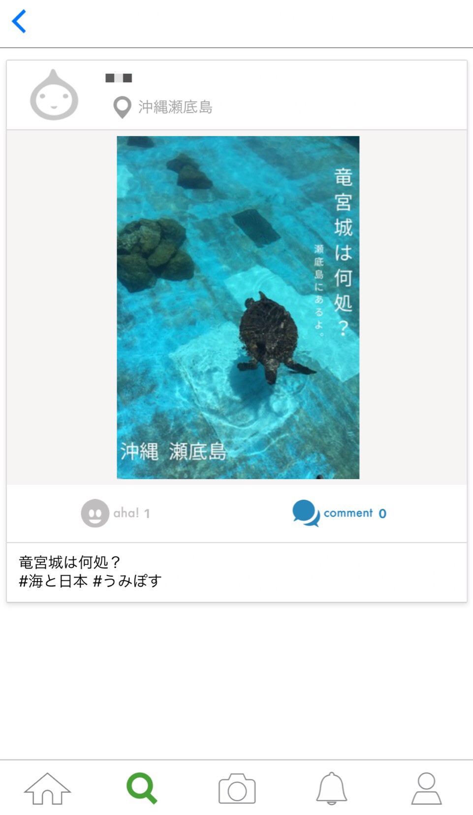 気になった投稿をタップすると、このように投稿が表示されました。澄んだ青い海で泳ぐカメがとても素敵なポスターですね!このように、他の人