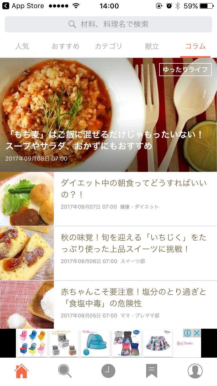 コラムカテゴリでは、食に関するコラムを無料で読むことができます。簡単なコラムとそれに関するレシピが掲載されていますよ。コラムのTOPページ右下には、コラムがどれくらい読まれたかが分かる数も載っています。どれくらいの人が関心を持っているかを知るのに役立ちます。