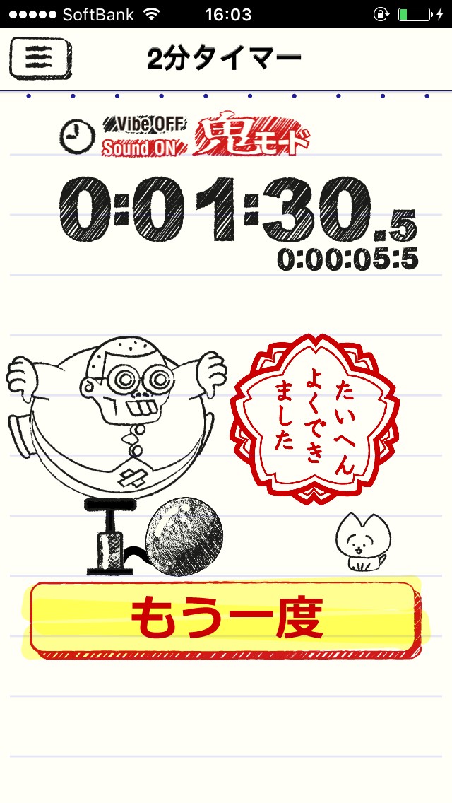 タイマーには、眼鏡をかけた男の子と、かわいい猫ちゃんのアニメーションが表示され、