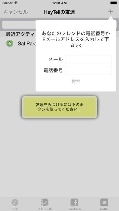 まず、あて先を入力します。友達に登録している人、フェイスブックまたはツイッターで繋がっている人、電話帳からの検索が可能です。下に大きく表示されている「ホールドしたままお話ください」を押しながらメッセージを話しましょう。位置情報も添付することができますよ。