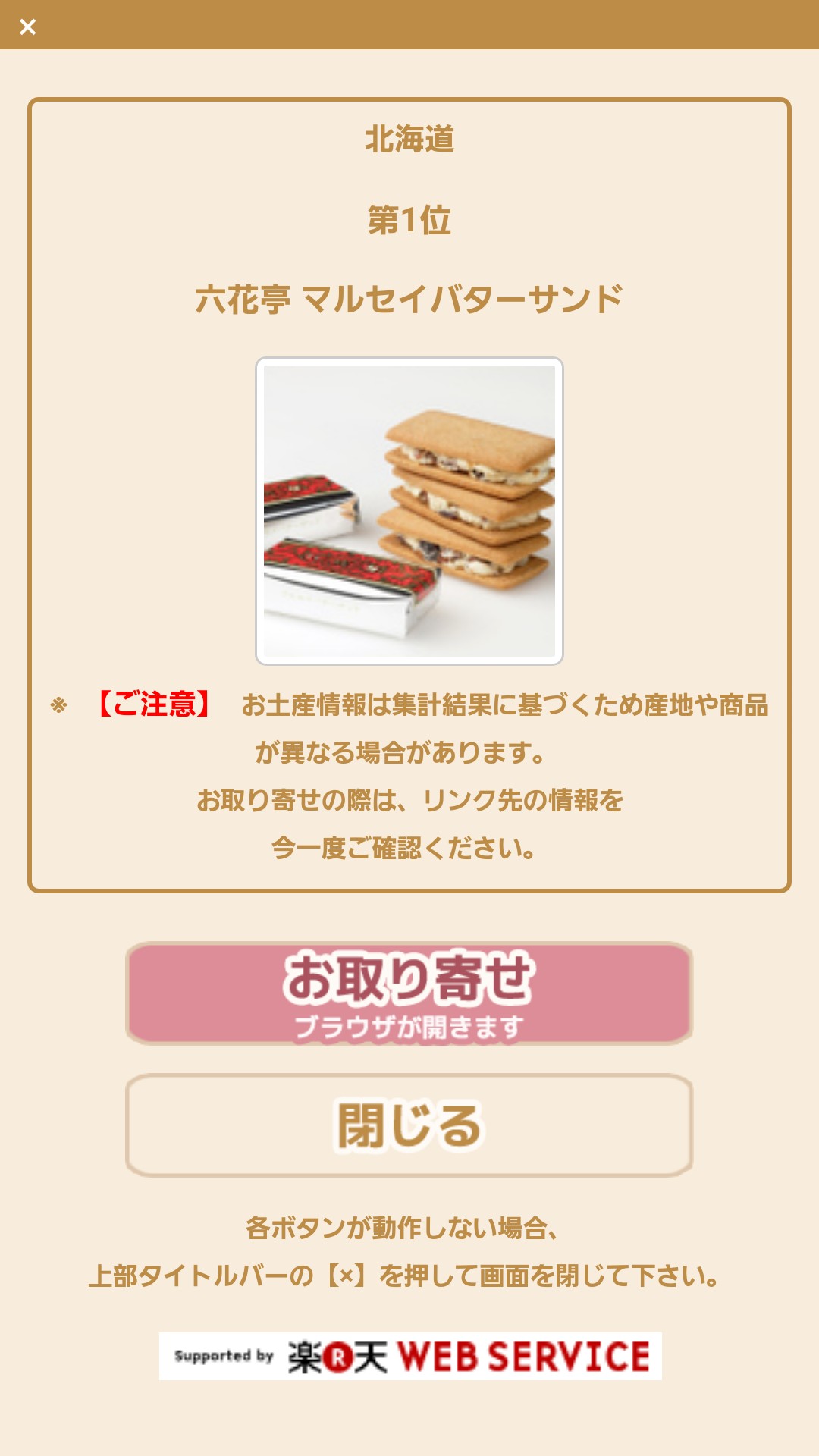 さらに一部の商品ではランキングに掲載されているお土産の詳細ボタンをクリックすると、そのお土産のイメージ画像を見ることができます。