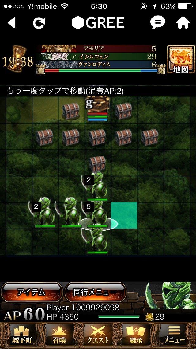 今まで紹介したクエストやミッションは、所持カードでパーティを自由に編成しそのパーティでひとつひとつイベントをこなしていく形式のものですが、このBF(バトルフィールド)戦場モードでは、対戦方式が一気に変わり、シミュレーション形式のRPGを体感できます。