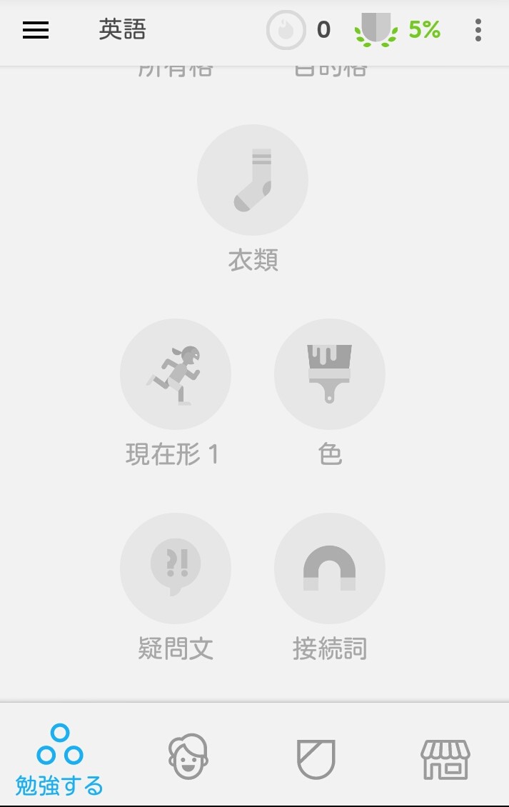 Duolingoは、難易度ごとに用意された各章を1つずつクリアしていく形式の英語学習アプリです。
