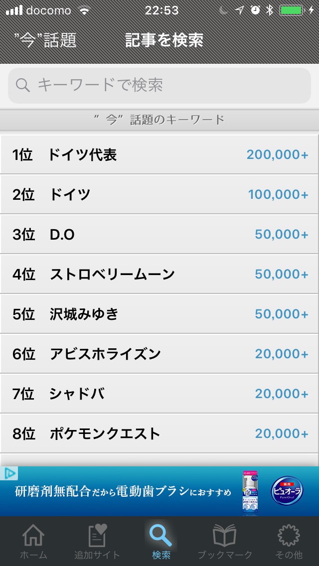 「今」多く検索されているワードを一覧表示してくれるので、人気記事をざっと確認したい時に重宝します。