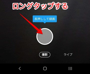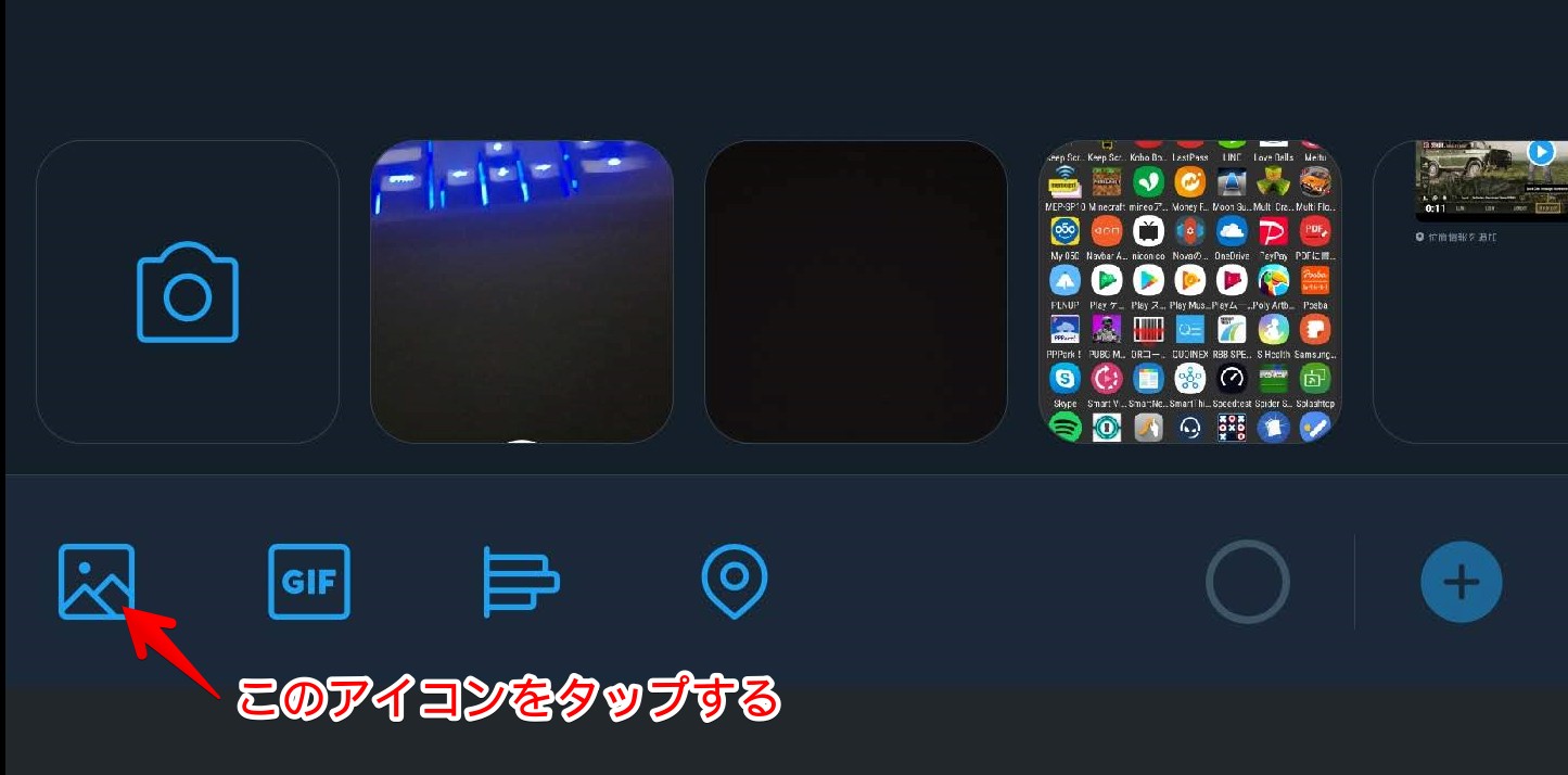 また、投稿画面のカメラボタンをタップすることによってもカメラを起動できます。いずれの方法でも起動するものは同じなので、使いやすい方を利用してください。