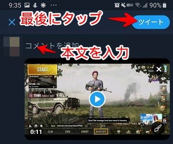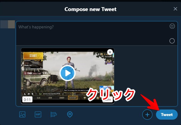 Tweetボタンをクリックすると動画が投稿されます。タイムラインに戻ってきちんと表示されていれば投稿完了です。