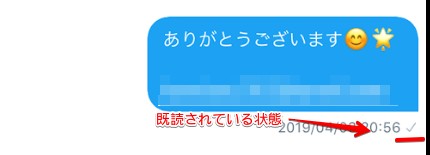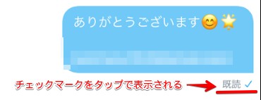 また青色のチェックマークをタップすると「既読」が表示され、相手に届いており、かつ内容を既に確認している既読状態を示します。