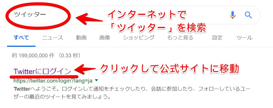 まずはインターネットを使ってTwitterの公式サイトへ進みます。