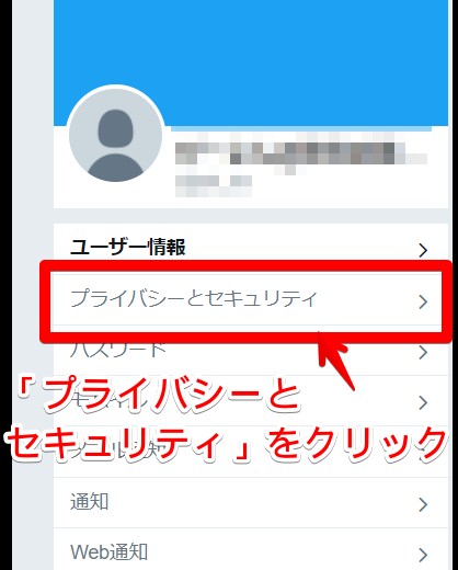 アカウントのユーザー名やセキュリティなどの「ユーザー情報」が自動的に表示されます。DMの設定は「プライバシーとセキュリティ」から選択できるため、「ユーザー情報」の下にある項目を選びましょう。