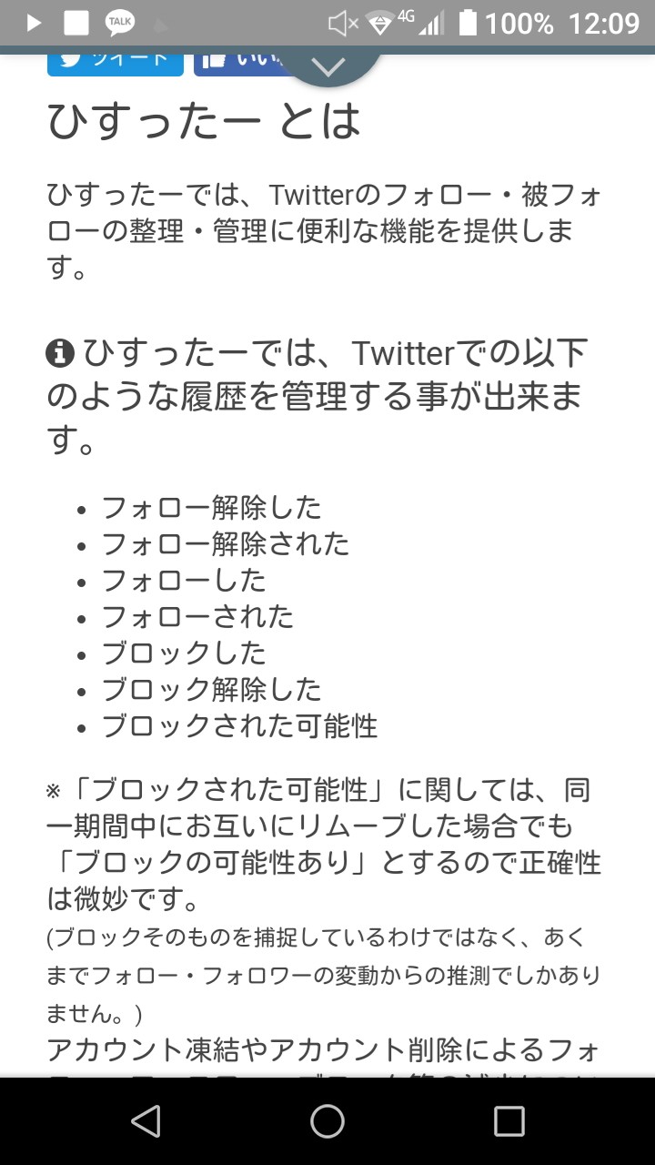 「ひすったー」を使用したい場合はTwitterでログインする必要があります。初回ログイン時にはフォロー・フォロワー・ブロック等の状態が記録されるだけになります。