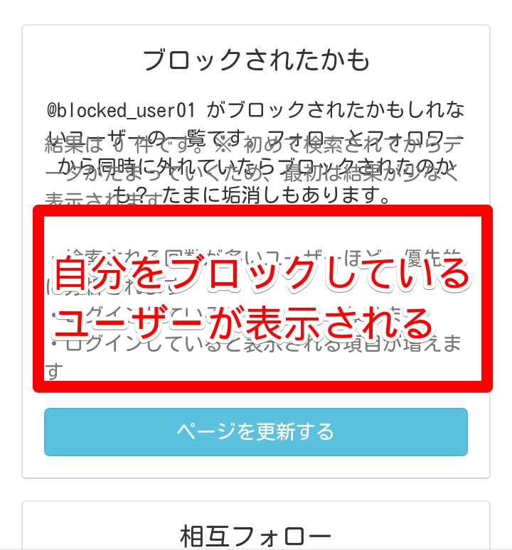 これは、ブロックされた時の相互のフォローを強制解除するという機能と同じことが起きているため、この現象が起きるとブロックがあったと誤認識してしまっているということです。