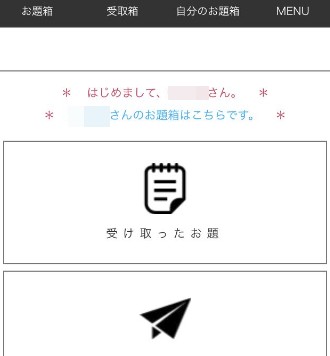 「◯◯さんのお題箱はこちらです。」をタップすると開設されたお題箱を確認できます。