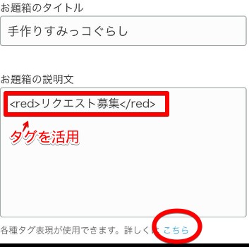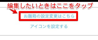 続いてお題箱のタイトルや概要を編集したい場合は、「お題箱の設定変更はこちら」をタップします。