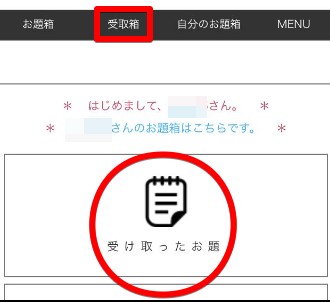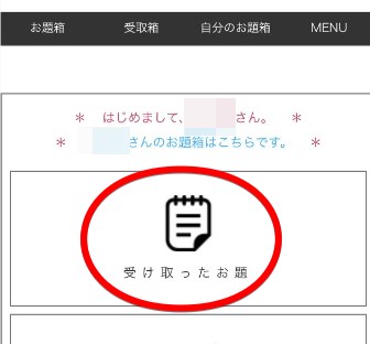 「受け取ったお題」をタップすると、自分のお題箱に届いたお題を確認できます。