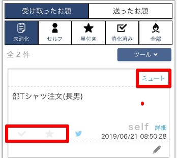 開設したお題箱に投稿されたお題は「消化済みにする」「星付きにする」「ミュートする」などの機能で管理できます。