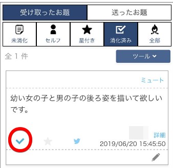 回答済みの質問や、創作済みのリクエストなど、すでに対応を終えたお題を消化済みにして活用できます。