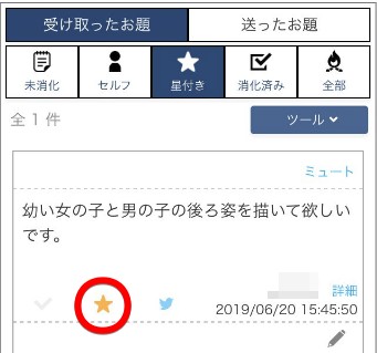 嬉しかった感想や、面白いと思ったリクエストなど、お気に入りのお題や重要なお題に印を付けて活用します。