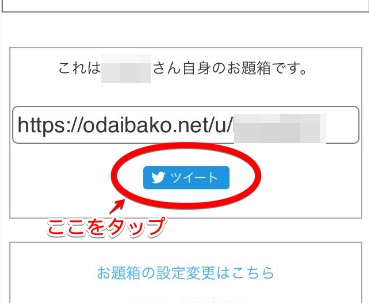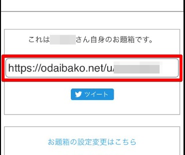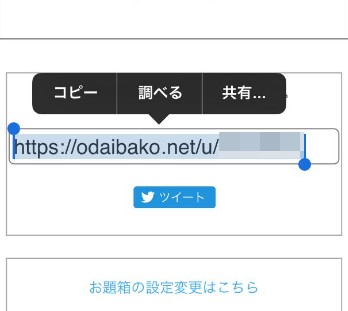 進んだ画面を下にスクロールすると、お題箱のURLが表記されています。