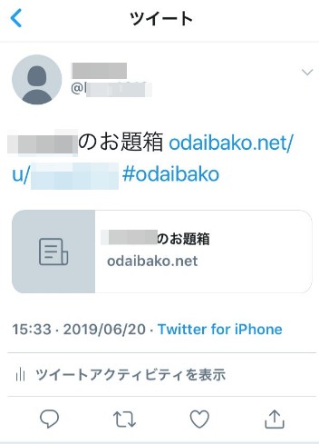 これであなたのお題箱へ直接アクセスできるツイート記事がアップされます。