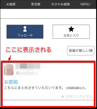 「お題箱を見つける」からは、フォロワーのお題箱しか検索できません。