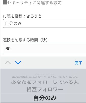 お題箱では、5パターンのお題を受け付ける範囲が選べます。