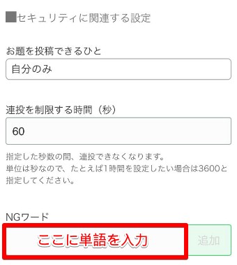 お題箱では、お題に悪口などを投稿され嫌な思いをしないために、NGワード設定で規制できます。NGワードに設定した単語を含むお題は投稿できません。