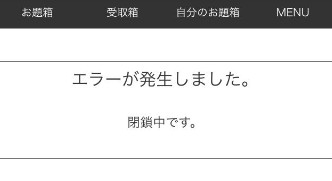 閉鎖すると、「自分のお題箱」から確認したとき、「エラーが発生しました。閉鎖中です。」と表示されます。フォロワーがお題箱にアクセスしたときも同様の表示です。